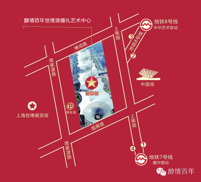 地 址:世博轴——世博源购物中心3区L2_210-212(世博源购物中心世博大舞台对面)直面中国馆,靠近博成路,地铁7号线、8号线直达